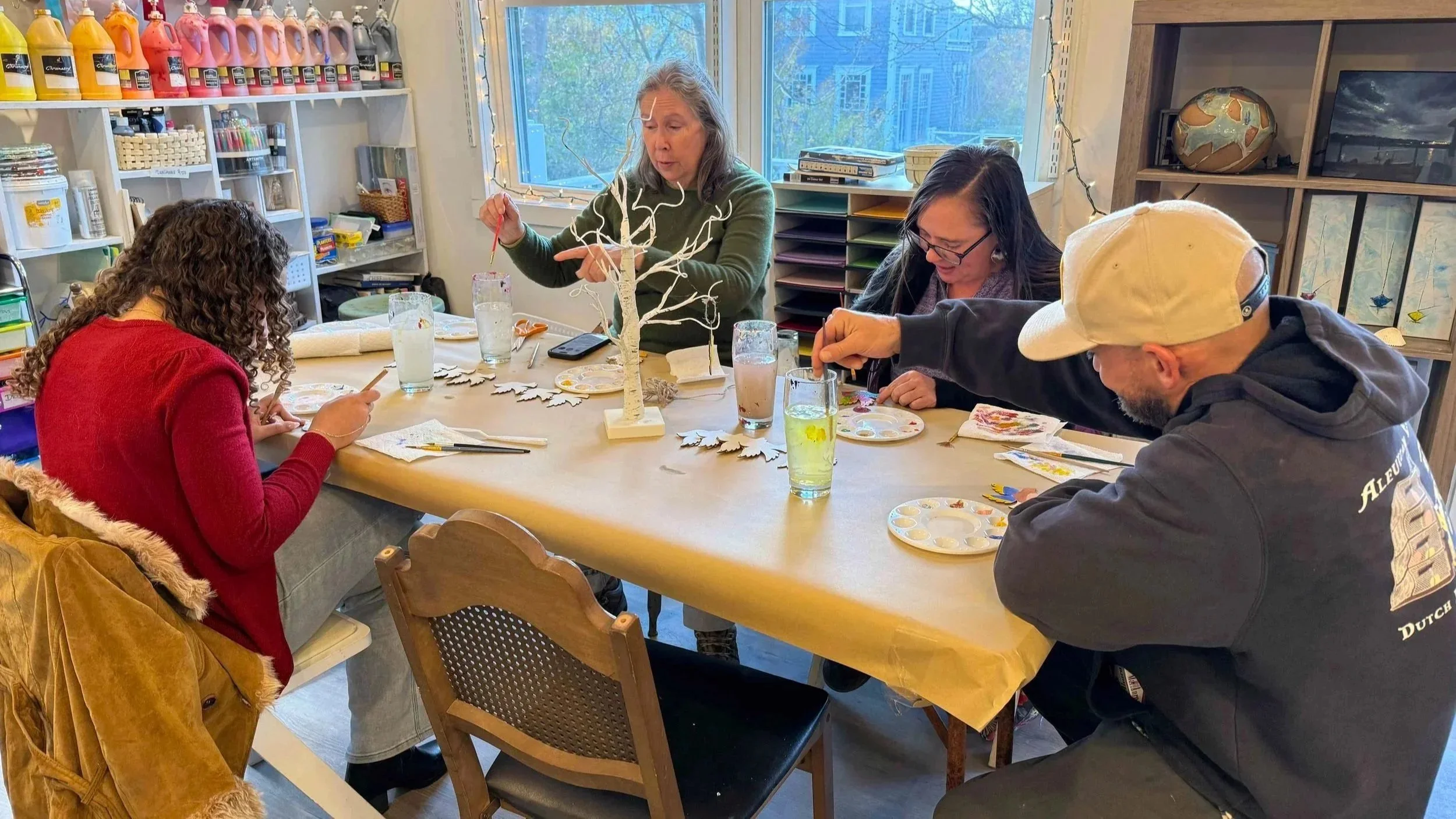 The studio's purpose is to serve as an art playground for all ages and all skill levels, and to make art supplies and social connection available to all. This program is self-guided so participants can work on whatever project they want, from painting a personal masterpiece to scribbling in a coloring book while chatting.